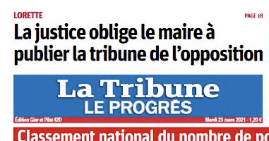 Une fois de plus la commune est sur le devant de la scène. Une fois de plus c’est le maire et sa majorité qui font parler d’eux. Après avoir été rappelé à l’ordre en Décembre (ICI) puis en Février (ICI) par Madame La Préfète de la Loire, le premier magistrat a été aujourd’hui contraint par le Tribunal Administratif de Lyon, saisi dans le cadre d’une procédure d’urgence ( le référé-liberté ), de publier la tribune de l’opposition qu’il avait censuré, prétextant que le texte contenait de fausses informations. Pourtant et comme le démontre parfaitement les arguments retenus par la cour administrative de Lyon, l’ensemble des éléments avancés par le groupe d’opposition ont pu être vérifiés.