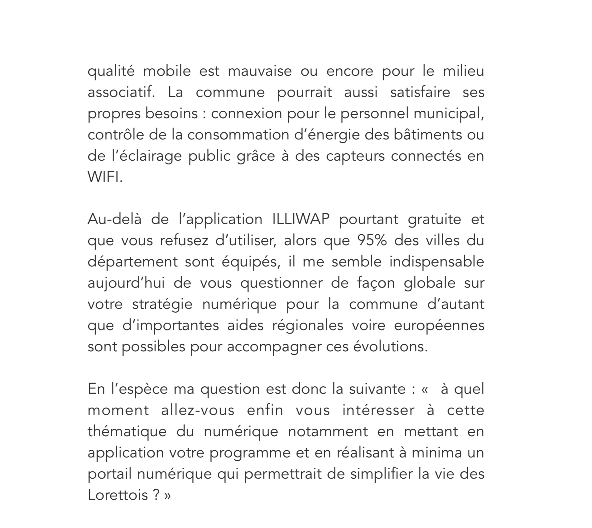 Conseil Municipal du 7 octobre Publié parlibresdagir9 octobre 20219 octobre 2021Publié dansNon classéÉtiquettes :conseilmunicipal, Démission, Democratie, gerardtardy, libresdagir, libresdagirlorette, lorette, mairelorette, opposition, oppositionlorette Question orale : Quelle politique de développement numérique pour notre commune ? Question orale Partager : Cliquer pour partager sur X(ouvre dans une nouvelle fenêtre) X Cliquez pour partager sur Facebook(ouvre dans une nouvelle fenêtre) Facebook J’aime chargement…
