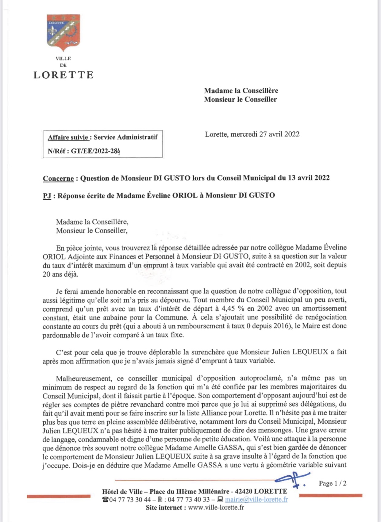 J’en profite aussi pour remercier l’ensemble des personnes qui me soutiennent au quotidien, Lorettois ou citoyens de la vallée du gier portant de l’intérêt à la liberté d’expression et à la démocratie locale.
