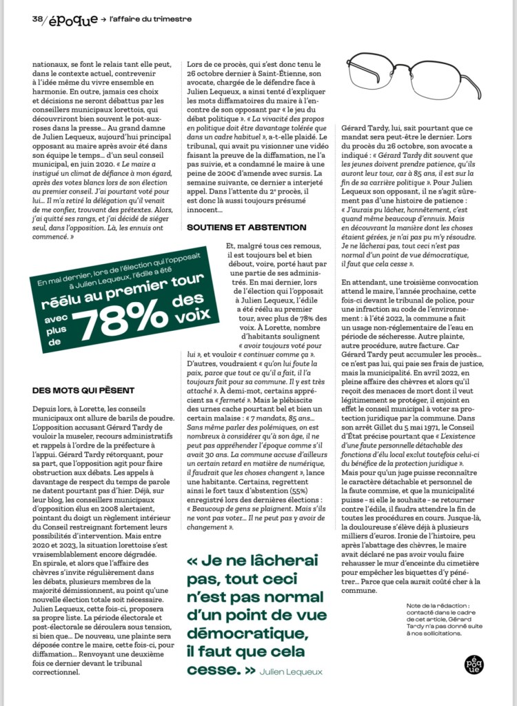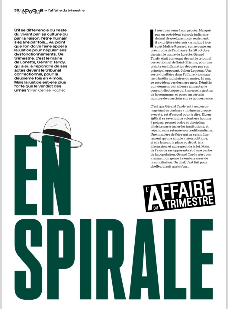 Dans son 1er numéro le nouveau magazine stéphanois « Epoque » met en relief les côtés les plus sombres du maire de Lorette. Une enquête particulièrement pertinente menée par Cerise Rochet.