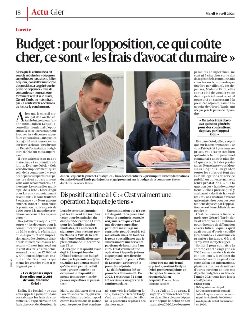 Au total ce sont donc près de 16 000 euros qui ont été dépensés pour assurer la défense de Gerard Tardy et ce alors même que l’audience en appel n’a pas encore eu lieu ! Nul doute que cela va coûter cher, très cher aux Lorettois.