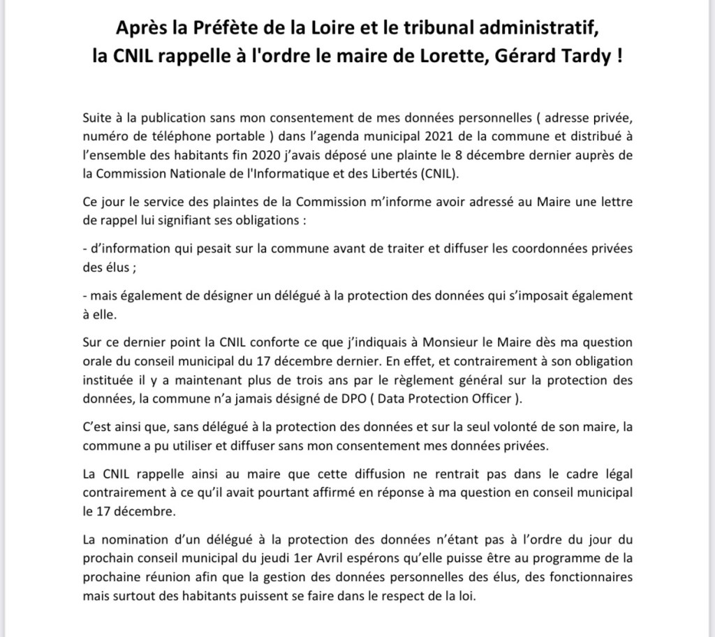 Enfin que dire de l’information parue dans le Progrès et sur TL7 le 30 Avril au sujet des prochaines élections départementales ? ( A lire ICI)