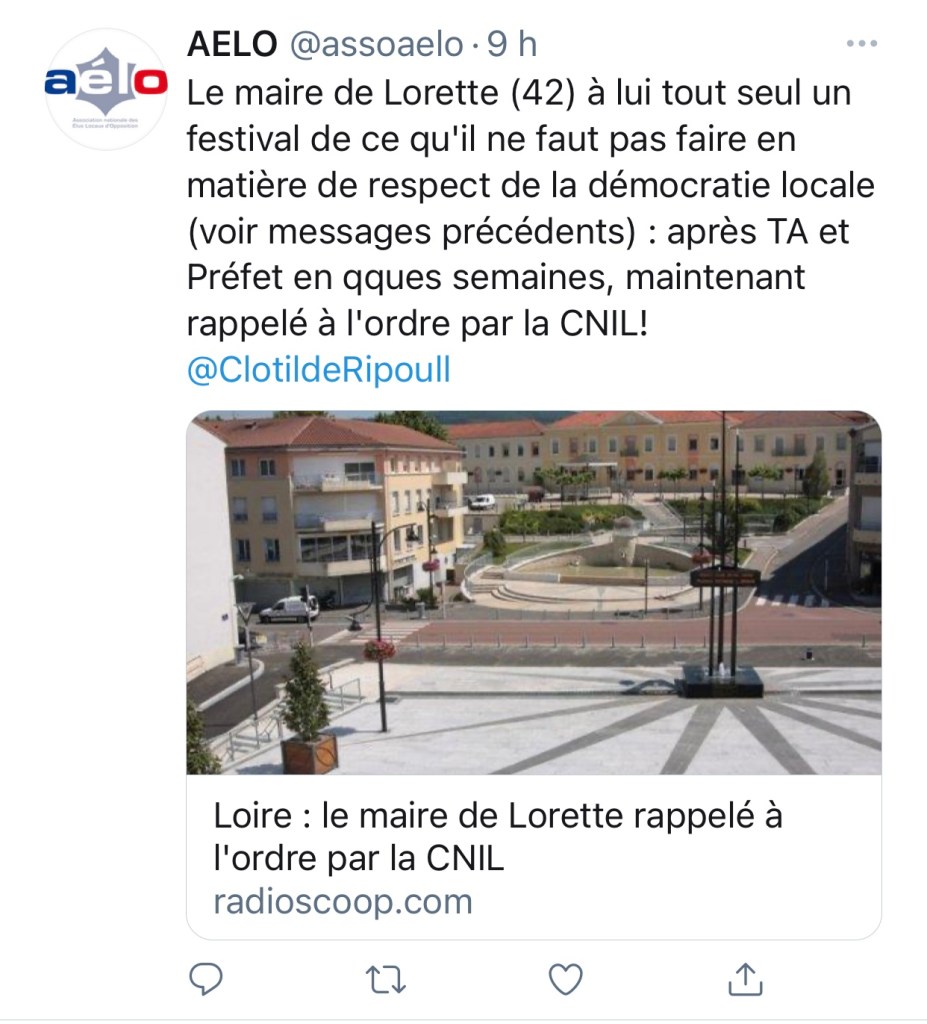 On y apprend qu’une conseillère municipale de Lorette, Chantal Fayelle, absente régulièrement du conseil municipal « faute de temps », se lance dans la campagne pour les élections départementales en tant que binôme de Séverine Reynaud, qui de son côté avait dû faire face début Avril au retrait de Luc François qui « préfère pour le moment se concentrer sur la proximité, et poursuivre le travail engagé. » A priori pour Madame Fayelle, la proximité c’est le département, pas le conseil municipal de sa commune…